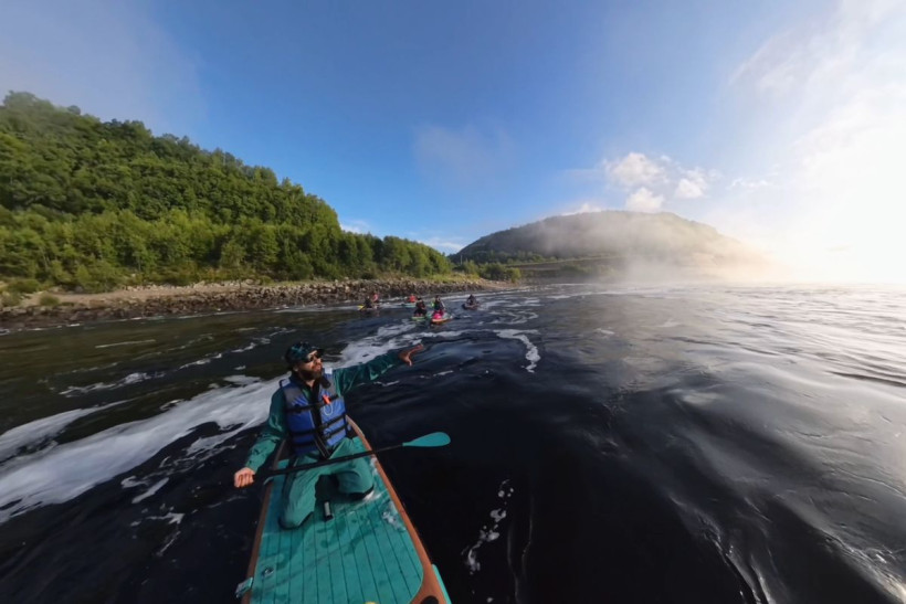— Волна как на море, эмоции переполняют, туман придает загадочности. Возможно, по ближайшей сопке сейчас медведи ходят и рыси, с которыми, я надеюсь, мы сегодня не встретимся. Тут вот местные рыбачат, сказали, что мы быстро дойдем до финиша. Не дойдем, а долетим, так как течение мощное, — рассказывает на видео Владислав.