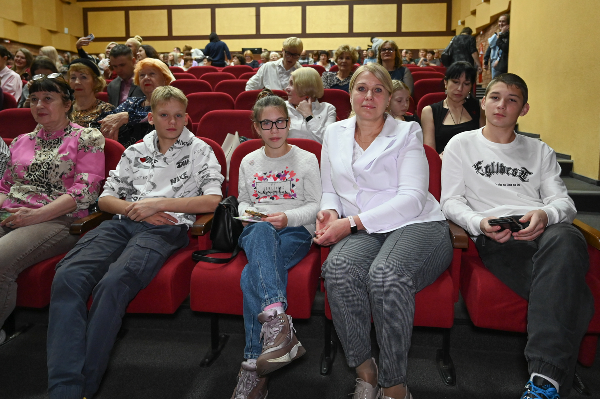 Ольга Вихорь из Свободного — мама семерых деток, ее материнский «стаж» — 28 лет. Кроме собственных, воспитывает и приемных детей. Психолог по образованию полностью посвятила себя развитию детей. На церемонию приехала с тремя младшими: Максиму, Андрею и Насте по 14 лет.