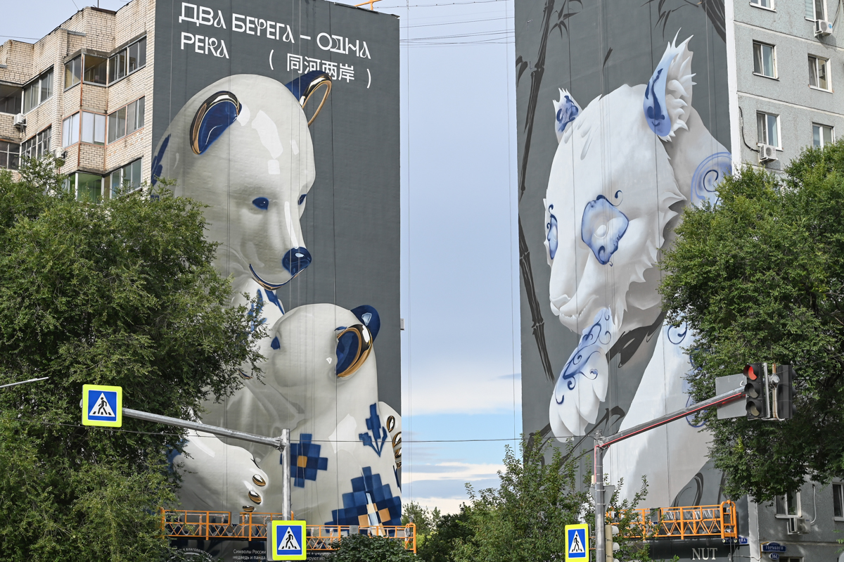 Фото: Алексей Сухушин— Муралы на зданиях по Горького — Калинина создавали вместе российский и китайский художники. На мой взгляд, получилось отлично. У нас еще есть планы по созданию муралов на улице Ленина в районе ДВОКУ. Там уже создан первый с портретом Жукова, еще несколько домов планируем украсить в такой же военно-патриотической теме, — поделился Василий Орлов. — К юбилею Байкало-Амурской магистрали муралы созданы в Тынде, есть они в Свободном, пытается не отставать и Белогорск. Муралы — это не дешевое удовольствие, и по созданию, и по содержанию в дальнейшем. В Благовещенске главная проблема – это подходящие пространства. Таких стен в городе не так много. Поэтому если есть предложения, готовы их рассмотреть.