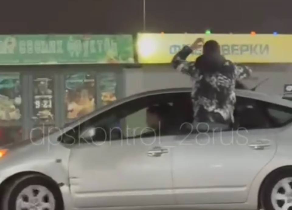 Фото: Скриншот видео @dpskontrol_28rusКамеры также зафиксировали: два пассажира находились в автомобиле с нарушением техники безопасности — высунувшись наполовину из салона и сидев на дверях авто.