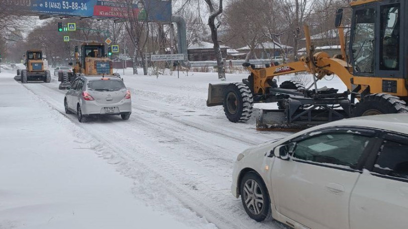 Коммунальщики Благовещенска продолжают устранять последствия снегопада. За сутки в городе выпала почти месячная норма и, по прогнозу синоптиков, снегопад продолжится.