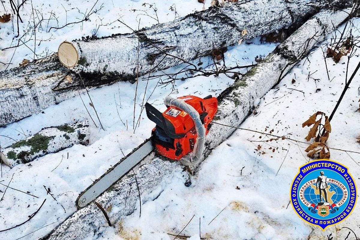 Фото: t.me/amurlesНезаконную заготовку древесины инспекторы Благовещенского лесничества выявили в ходе планового патрулирования 27 ноября. Инспекторы приехали на звук работающей бензопилы и падающего дерева и увидели там местного жителя.