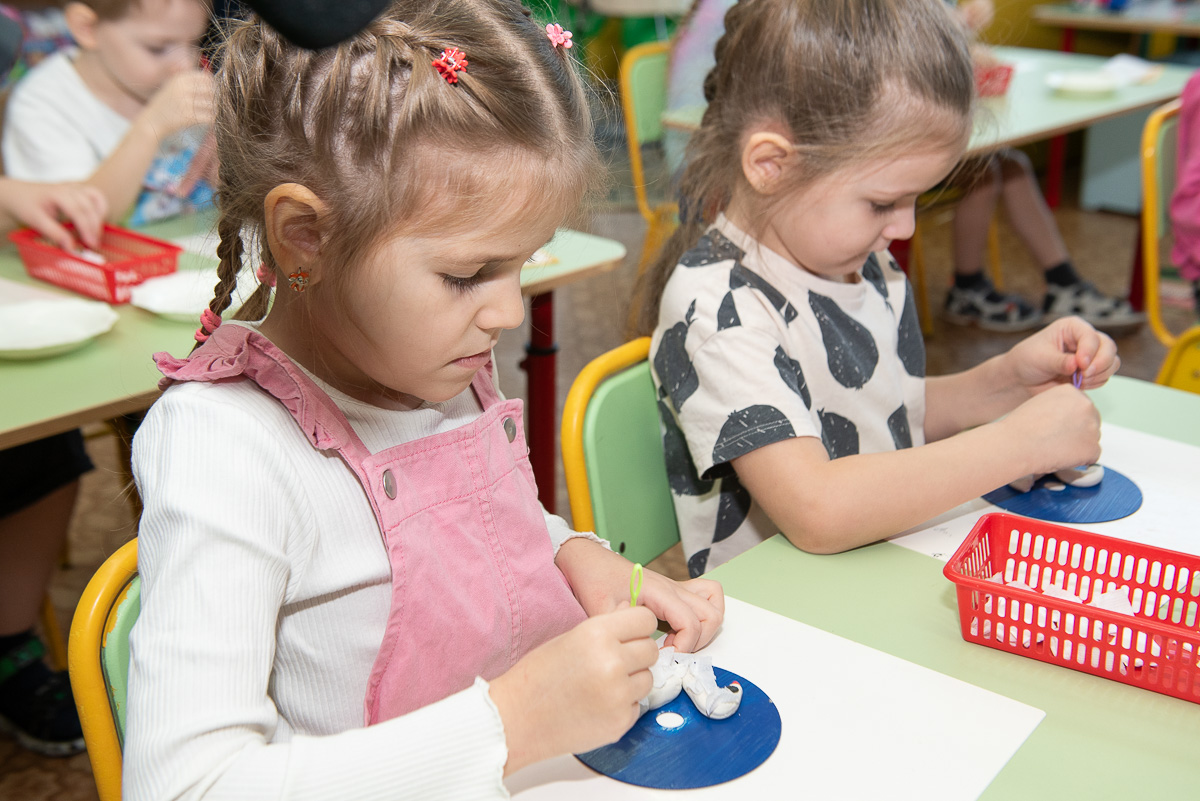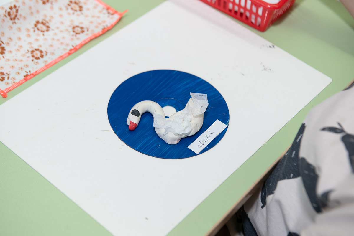 За следующей дверью — мир детского творчества. Здесь ребята старшей группы погружены в волшебный процесс лепки. И снова гости услышали: «Нихао!»