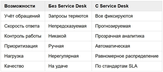 Service Desk — это инструмент, который делает поддержку не «пожарной», а стабильной и профессиональной.