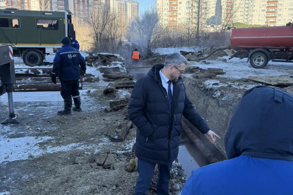 Фото: t.me/mingkh_amurБез тепла остались жилые дома на Игнатьевском шоссе, 12/2, 12/3, 12/4, 12/6, а также Студенческой, 21. Для замены ветхих сетей из областного резерва министерство выделило 80 метров новых труб. И.о. главы минЖКХ Приамурья Илья Зинков лично осмотрел место аварии и пообщался с ремонтными бригадами, сообщили в министерстве.