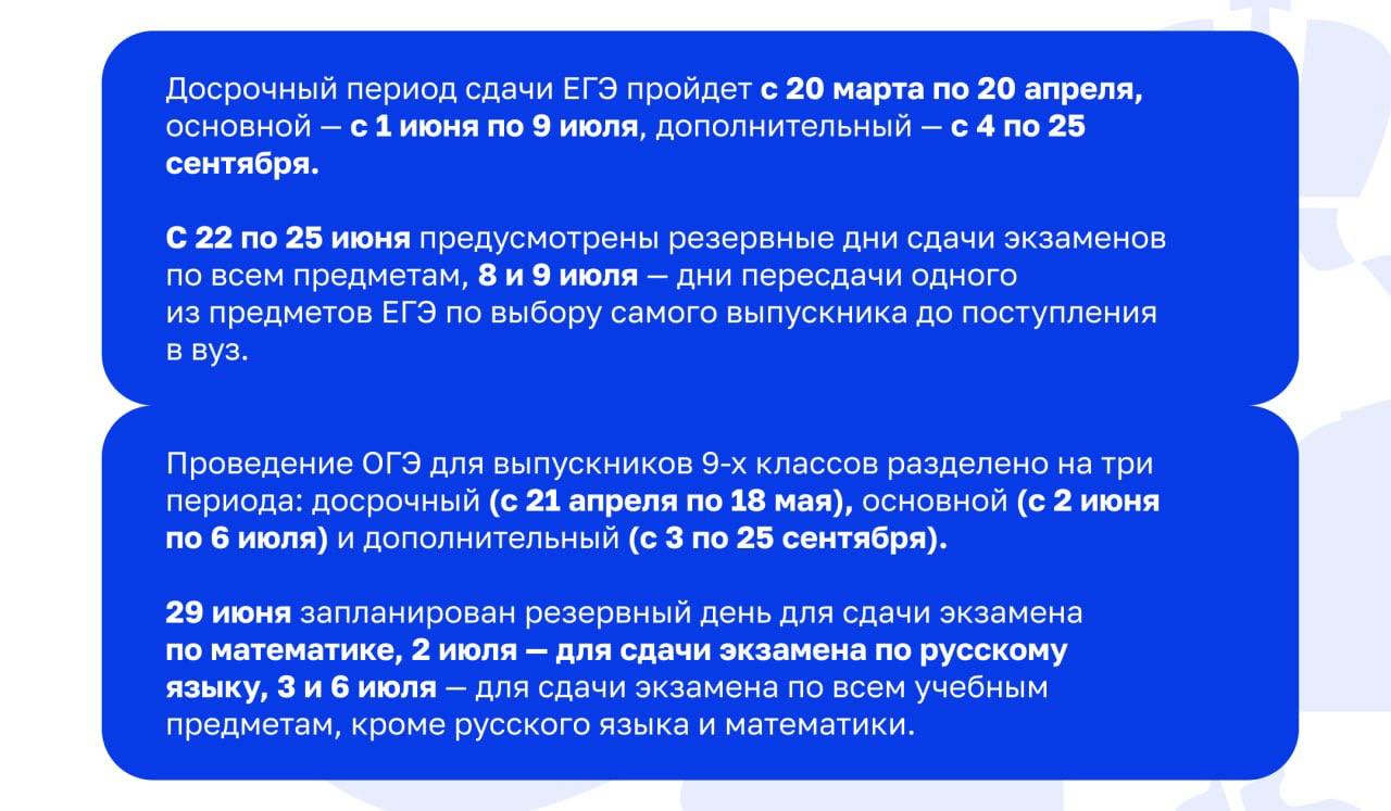 Резервные дни сдачи экзаменов: