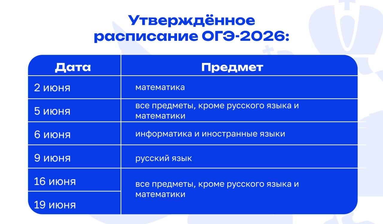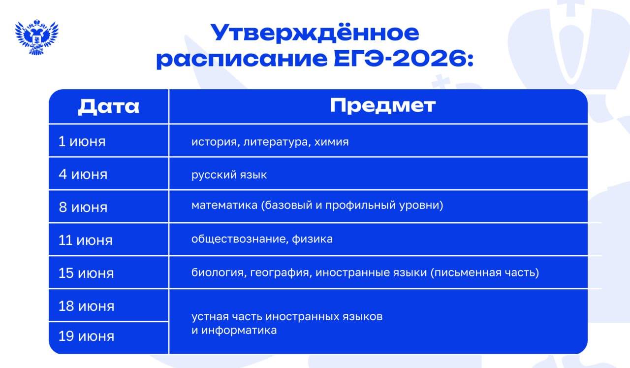 16 и 19 июня — все предметы, кроме русского языка и математики.