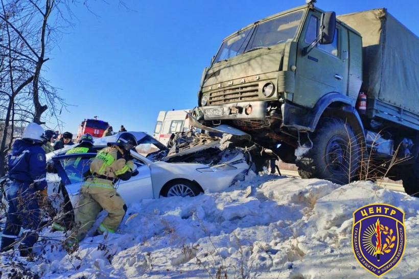 Жесткое ДТП произошло в пятницу, 12 декабря, на трассе «Амур» в Свободненском районе. Около 11:00 на 20 километре автодороги «Подъезд к г. Свободный со стороны ФАД «Амур»» столкнулись КамАЗ и Toyota Camry. Пострадали оба водителя.