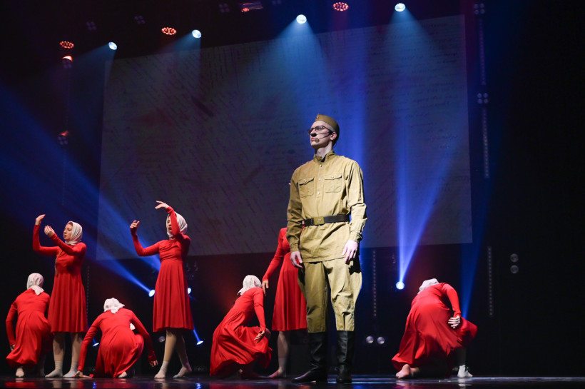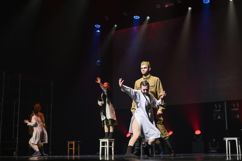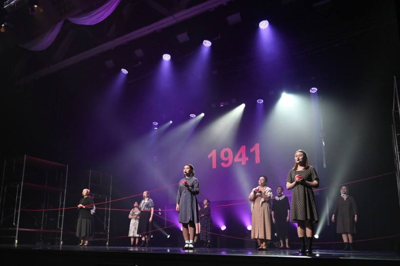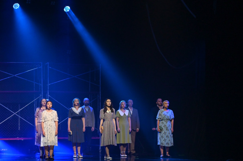 — Одно из условий фестиваля в этом году: программа должна быть на местном краеведческом материале, — продолжила режиссер филармонии. — Я столкнулась с огромным количеством информации — просто утонула в ней. Но выбрала пять историй, которые мы постарались передать через образы, с минимумом текста, и представить в разных жанрах. Так у нас появились на сцене истории о военном летчике, герое Советского Союза, о детях войны, перенесших ужасы концлагеря, о медсестре, которой вместо белого свадебного платья пришлось надеть белый санитарный халат и о двух влюбленных, встретившихся после войны.