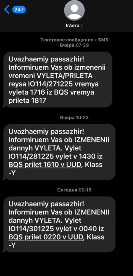 По словам пассажиров, это не единичный случай. Массовые переносы и отмены коснулись не только этого рейса «ИрАэро», но и других.