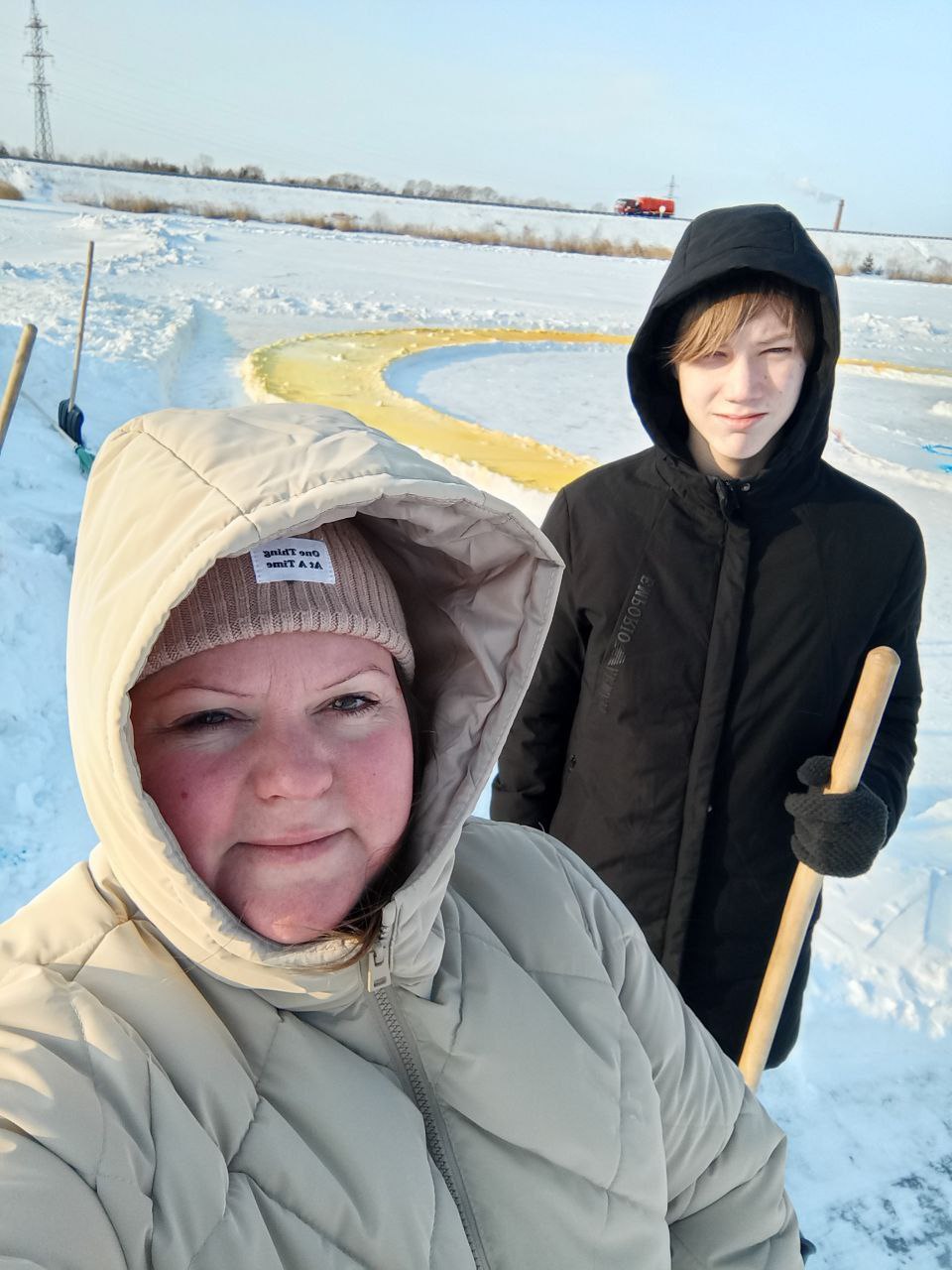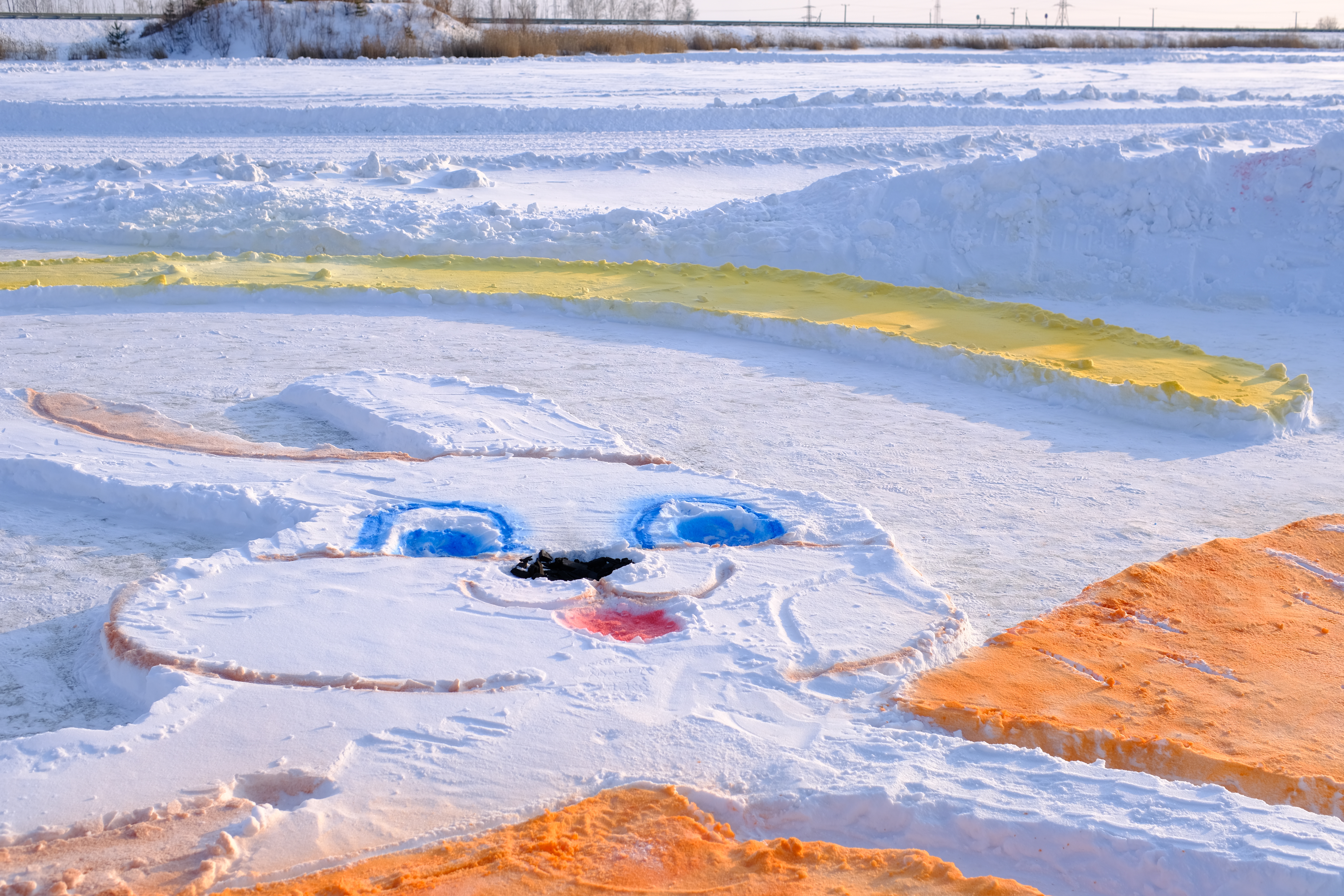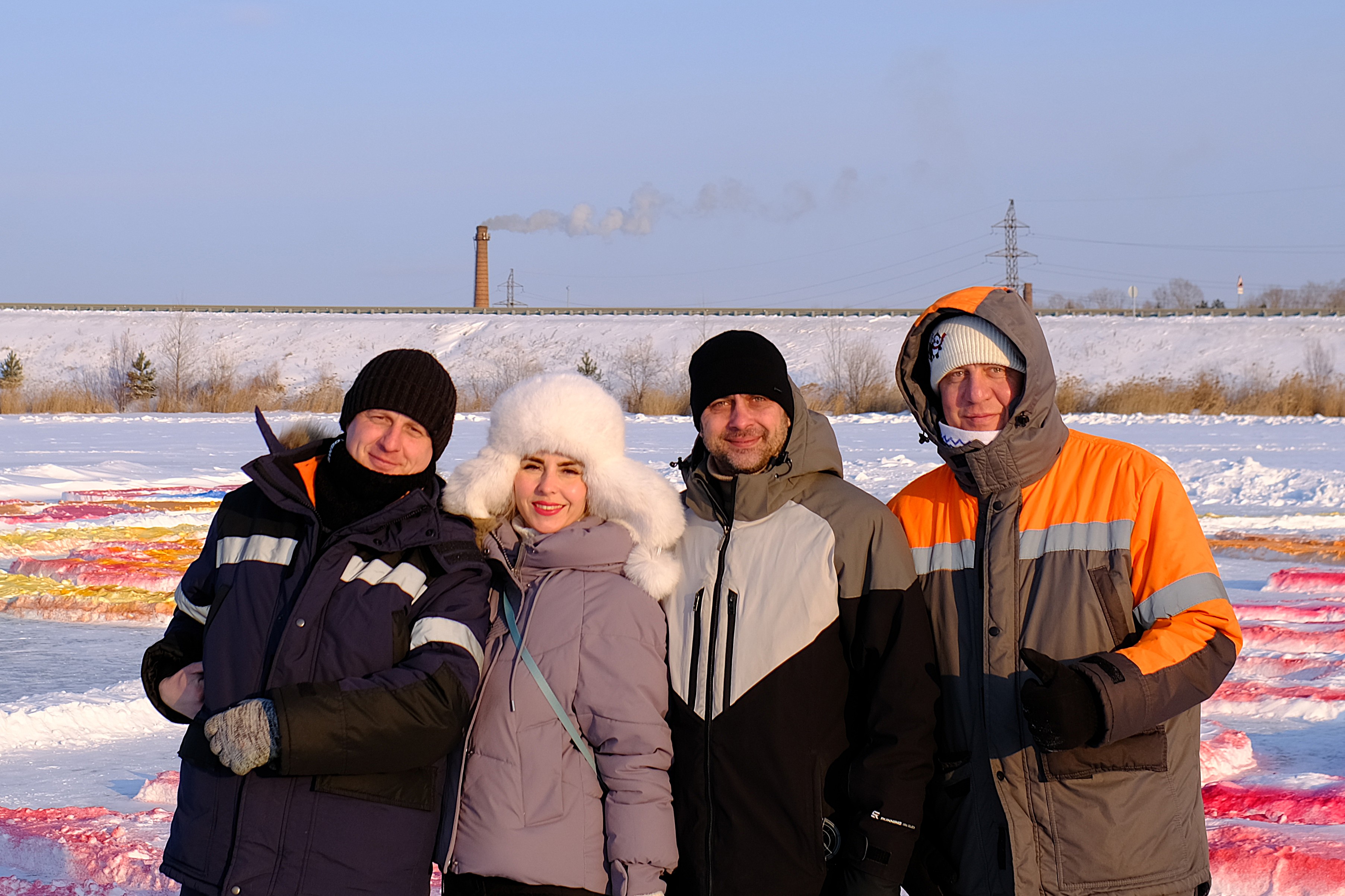 Путь к озеру стал первым подвигом. Федеральная трасса была основательно заметена, и дорога выдалась тяжелой и напряжённой. А когда мы, наконец, добрались до места, нас ждал новый удар: всю разметку, которую нанесли заранее, все контуры будущего шедевра пурга скрыла под толстым слоем свежего снега. На белом поле виднелись лишь смутные очертания. Казалось, работа проделана зря.
