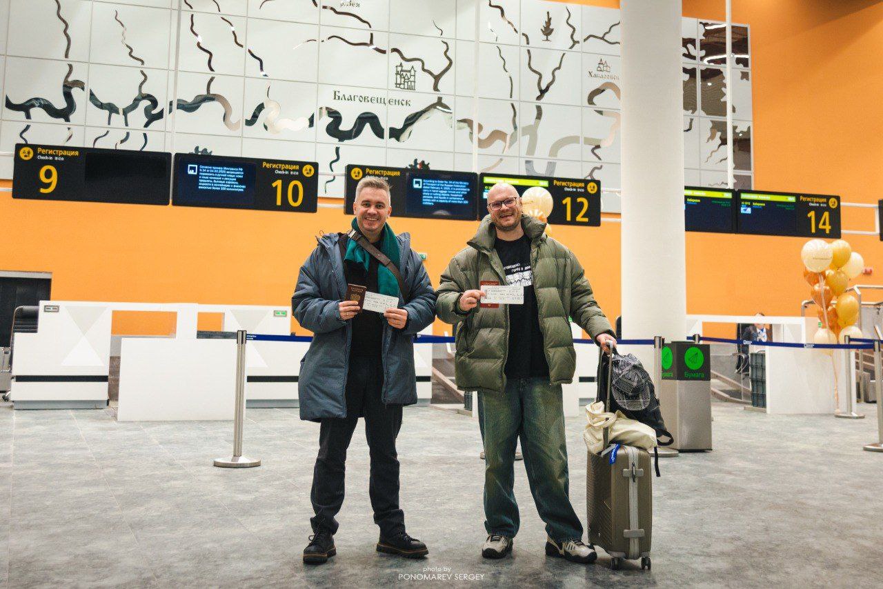 — Вчера мы на себе проверили все системы нового терминала. 50 человек, которые строили и которым предстоит работать в этом красивом аэровокзале, прошли все процедуры, которые должны пройти обычные пассажиры: входной досмотр, регистрацию на рейс и сдачу багажа, предполетный досмотр, посадку и высадку из самолета, получение багажа. Все по-настоящему настолько, что мы реально подняли в воздух самолет минувшей ночью с нами — первыми пассажирами тестового рейса. CRJ-200 сделал круг над ночным Благовещенском и приземлился в аэропорту. На борту с завершением стройки коллектив аэропорта по громкой связи поздравил директор, — рассказал пресс-секретарь аэропорта Антон Сильвоник.