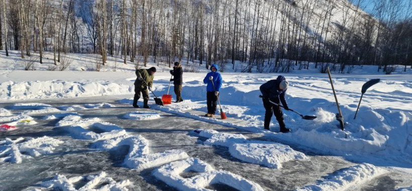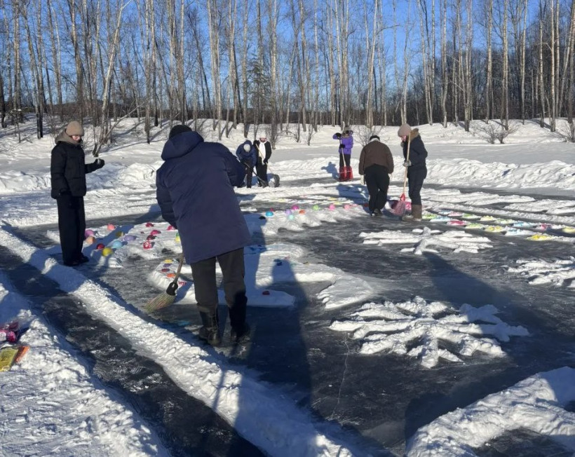 «Мы хотели вернуться в детство»: жители микрорайона города Сковородино впервые нарисовали ледовую открытку