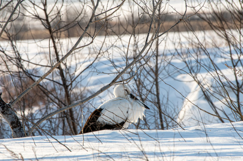 Орнитологи и натуралисты рассказывают о молодом дальневосточном аисте, который по неизвестным причинам не улетел на юг, а остался зимовать в Амурской области. Птицу заметили в Константиновском районе. Чтобы с пропитанием не было туго, местные жители подбрасывают ему рыбу.