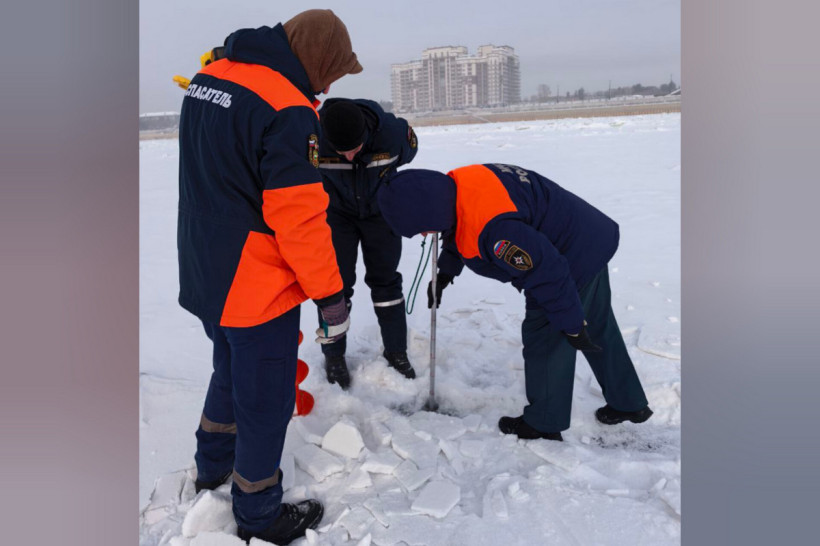 В Благовещенске спасатели измерили толщину льда на месте будущей площадки «ЗимФестАмура»
