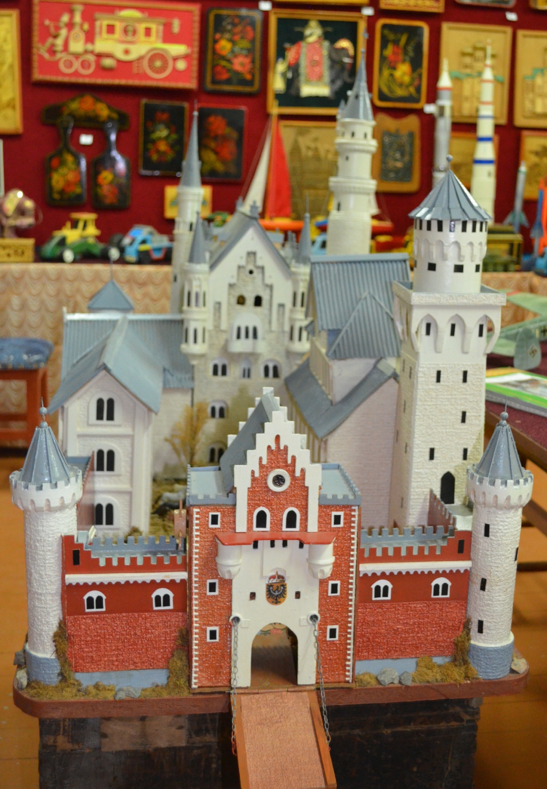 У всех предметов в доме Кикоть была своя история. Например, макет баварского замка Нойшванштайн. Его фотографию Владимир увидел в начале 2000-х годов, и это сооружение потрясло его своей красотой и величием. Не имея никаких чертежей и описаний (интернета тогда в селе не было), учитель труда с мальчишками только по снимку воссоздали замок в уменьшенном виде. А через 15 лет супруги, заядлые путешественники, побывали в Баварии и смогли собственными глазами увидеть замок Нойшванштайн.