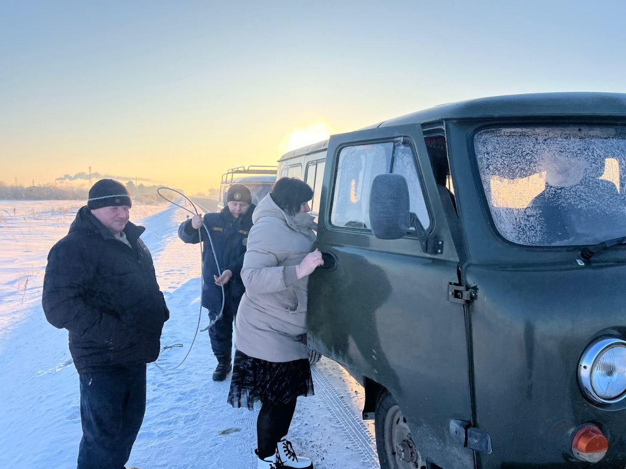 Убедившись, что экстренная помощь никому не нужна, пожарные транспортировали «буханку» на территорию пожарной части. Здесь путешественников отогрели и напоили чаем. Но и на этом помощь не закончилась.