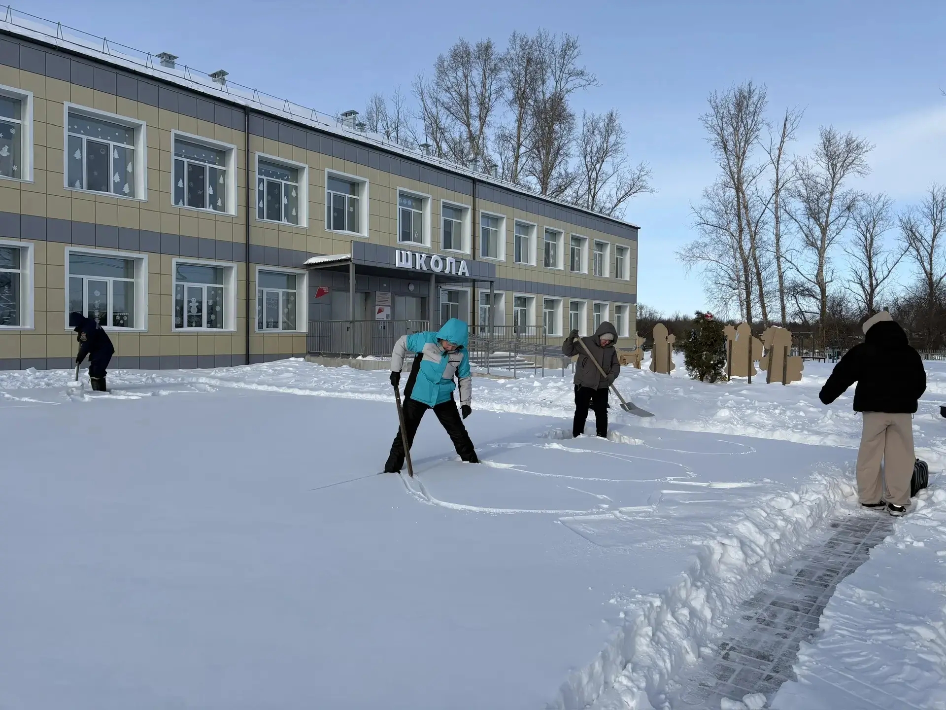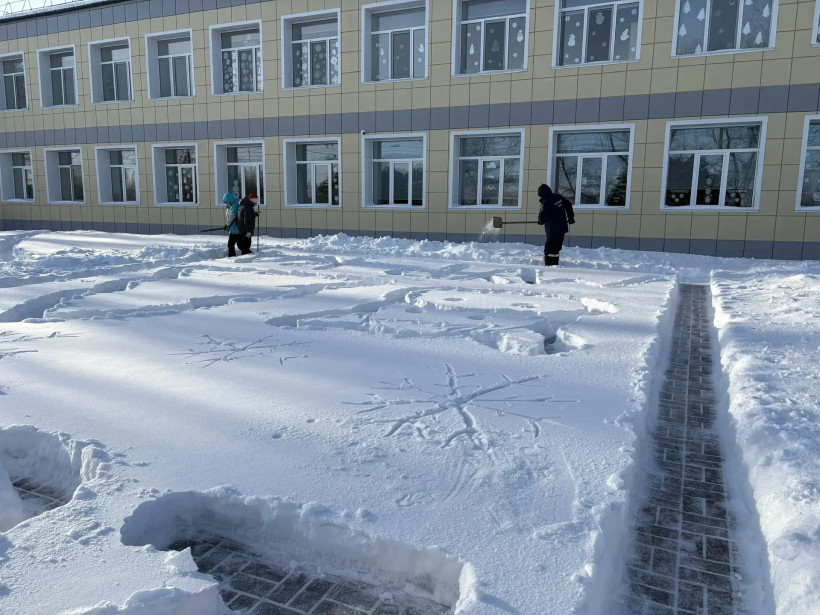 Мур-ка — не корова, а лошадь: снежную открытку нарисовали ученики и педагоги во дворе Муравьевской школы