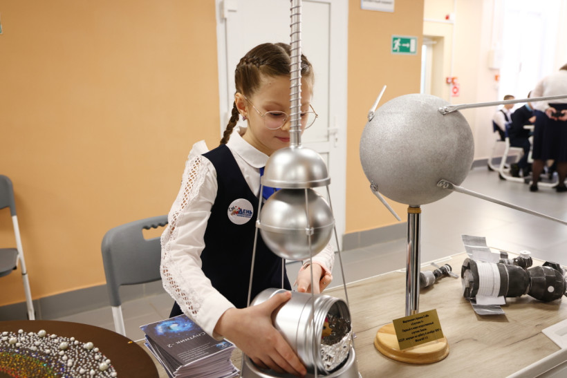— Чтобы сделать свои модели, мне пришлось разобрать две палатки — папы и дедушки. Нужны были спицы, — серьезным тоном говорит третьеклассница 16 школы Благовещенска Ариана Мартинович. Судя по настрою юной изобретательницы, у папы с дедушкой не было права на отказ. Перед девочкой стоят две серебристых модели — Спутник-1 и Спутник-2. Глядя на них, даже не верится, что детали школьница нашла у себя дома. Но это так. — Смотрите, кошачья миска, пластиковая банка, внутри — игрушечная собачка, потому что Спутник-2 вышел на орбиту с Лайкой. Затем — елочный шар, а верхушка — половинка от большого чупа-чупса, ножку которого я обмотала веревочкой. Ну а спицы — от палатки.