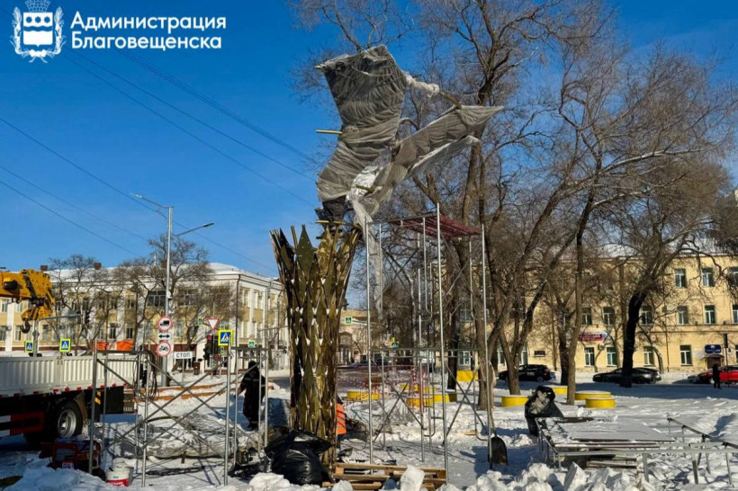 Новый арт-объект появится в сквере на Калинина — Ленина в Благовещенске. Помимо уже существующих архитектурных форм, общественную территорию будет украшать конструкция в виде золотого дерева. Рабочие уже приступили к ее монтажу.