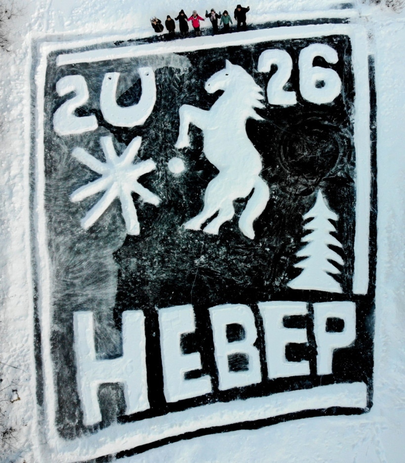 Впервые открытку на фестиваль «Чудеса на льду» создали жители села Невер Сковородинского округа — в 40-градусный мороз орудовали лопатами дети, педагоги и родители.