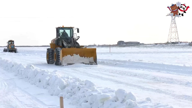 На льду реки Амур в Благовещенске тяжелая техника начала расчищать площадку для «ЗимФестАмура»
