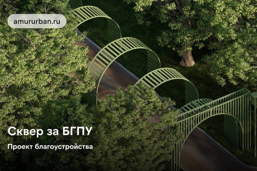 Главными же декоративными элементами пространства станут индивидуально разработанные арки. Их выполнят из металлокаркаса и окрасят в зеленый цвет. Порталы разместят на входах в сквер, а также по центральной аллее, сообщается на официальном сайте правительства Амурской области.