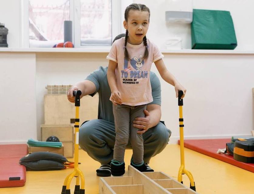 В данный момент девочка с папой находится на реабилитации в Томске, где специалисты работают над балансом и чувствованием ребенком своего тела. Для вырабатывания уверенной походки заставляют юную пациентку преодолевать различные препятствия.