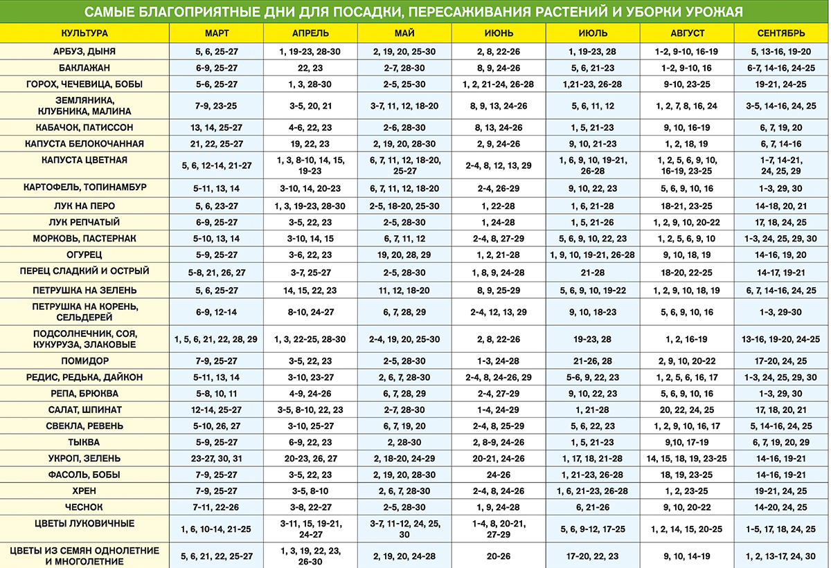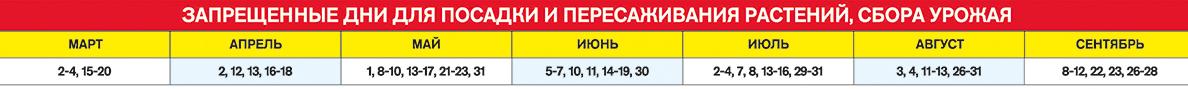 Запрещенные дни для посадки и пересаживания растений и сбора урожая