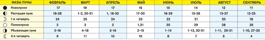 - Сентябрь: 6, 7, 19, 20, 29