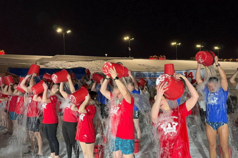 90 благовещенцев с криком «Быть здоровым — это модно!» вылили на себя по ведру ледяной воды