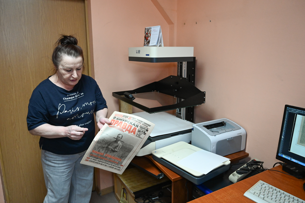 — У нас в библиотеке самый полный архив газеты «Амурской правды», и больше негде взять полный вариант выпуска, чтобы восстановить вырезанный участок, — говорит Екатерина Андреева.