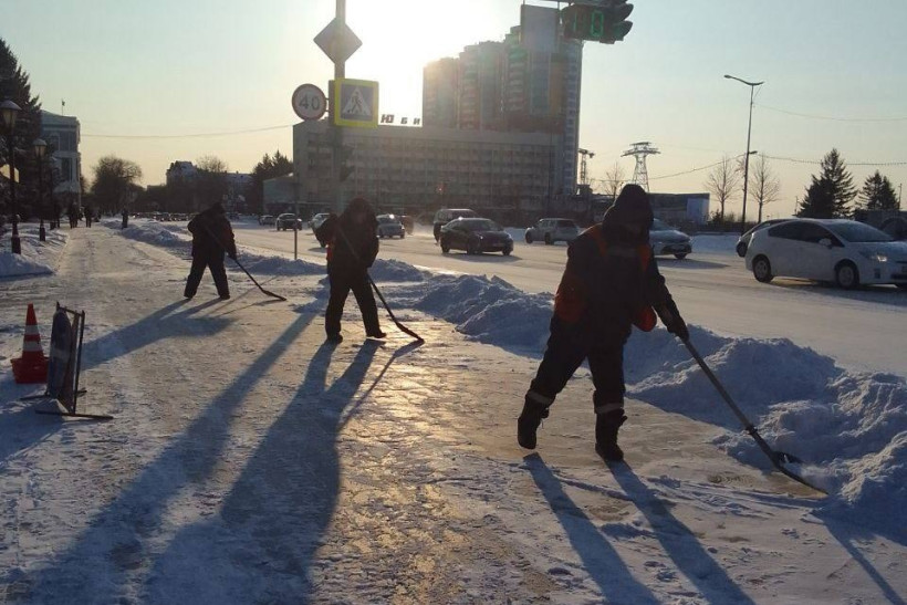 Работники ГСТК очищали улицы Чайковского, Мухина, Комсомольской и Красноармейской, а крупные магистральные улицы подсыпали противогололедным материалом. Техника прошла по тротуарам на улице 50 лет Октября, Институтской и Василенко. На улице Амурской ресурсоснабжающие организации вручную очищают ото льда канализационные люки.
