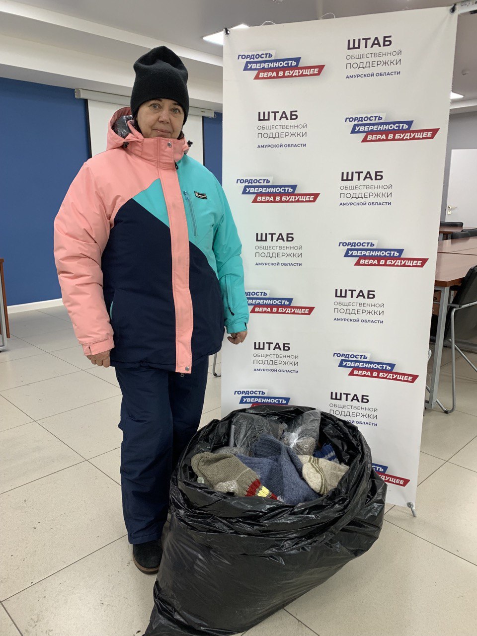 В Благовещенске добровольцы связали для солдат теплые носки и манишки, приобрели сотню новеньких тельняшек и больше двух десятков комплектов термобелья. К благотворительному мероприятию партпроекта «Единой России» «Старшее поколение» присоединились городские союзы женщин и пенсионеров, региональные отделения Соцфонда РФ и Фонда ОМС, а также студенты и школьники.
