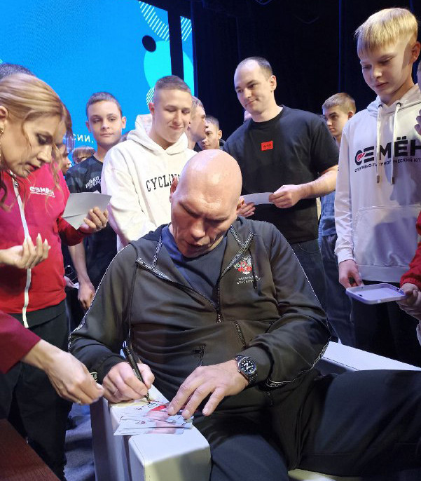 Первый в истории нашей страны чемпион мира по боксу в супертяжелом весе по версии WBA Николай Валуев впервые приехал в Благовещенск гостем Международного российско-китайского фестиваля зимних видов спорта «ЗимФестАмур». Многократный чемпион провел встречу в ОКЦ с амурскими спортсменами, которые со своими тренерами приехали из разных концов Приамурья, чтобы вживую увидеть легенду бокса и вместе сфотографироваться. Именитый спортсмен ответил на вопросы юных боксеров. Без автографа тоже никто не остался.