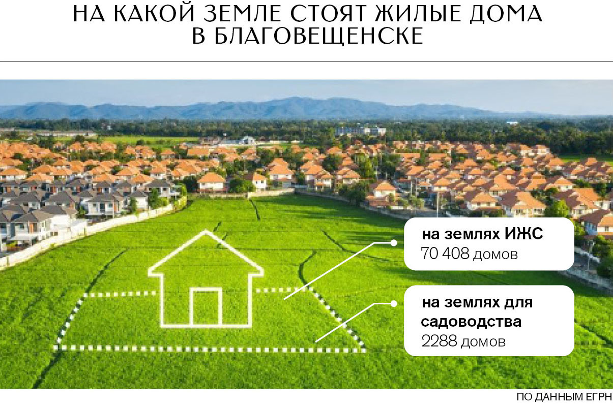 Но в столице Приамурья, как и во многих других городах РФ, люди порой строят полноценные дома на своих дачных участках. По сути, собственники живут в таких же коттеджах, но вид разрешенного пользования земли у них официально другой — ведение садоводства.
