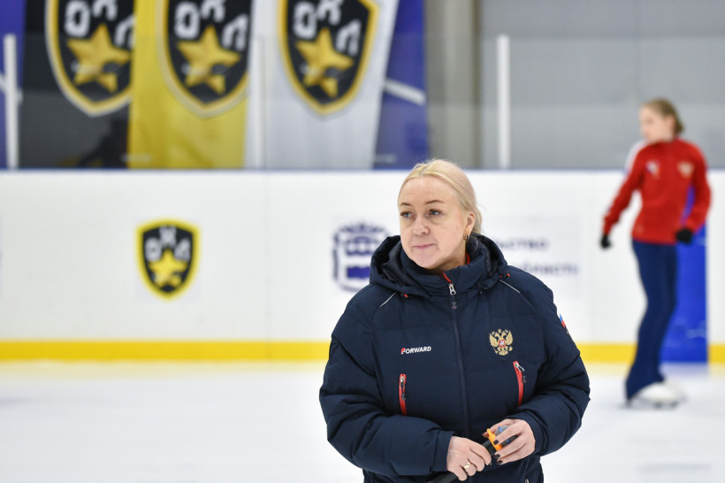 Евгения предлагает фигуристкам провести занятие классически, но с предельным вниманием к деталям: разминка, отработка скольжения, прыжковая часть и вращения. Уже в первых упражнениях становится ясно: главное для неё — не просто техника, а культура движения.