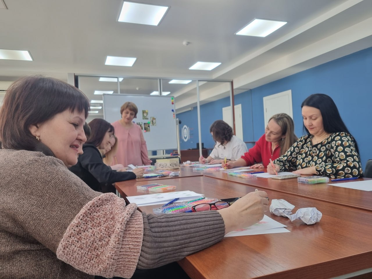 Под руководством арт-педагога участницы мастер-класса рисовали каракули, писали самим себе письма и учились благодарить себя даже за негативный опыт. Все это — техники быстрого снятия напряжения. Также амурчанки искали личный источник силы и вдохновения, анализировали собственное настроение с помощью метафорических карт. Как многие потом отметили, время пролетело быстро, творили они с удовольствием.