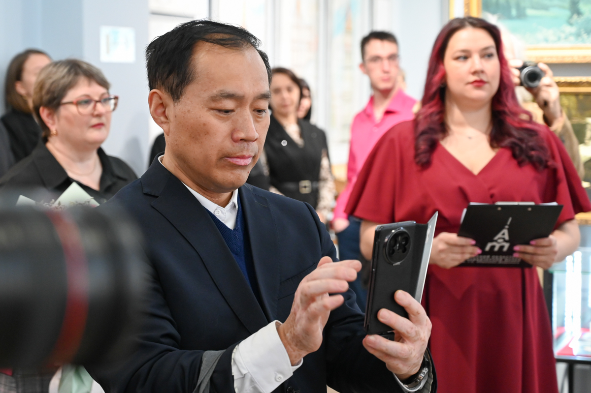 На открытии выставки было многолюдно. Друзья, поклонники, почетные гости и деятели культуры, китайские партнеры. Все так или иначе пересекались с мастером.