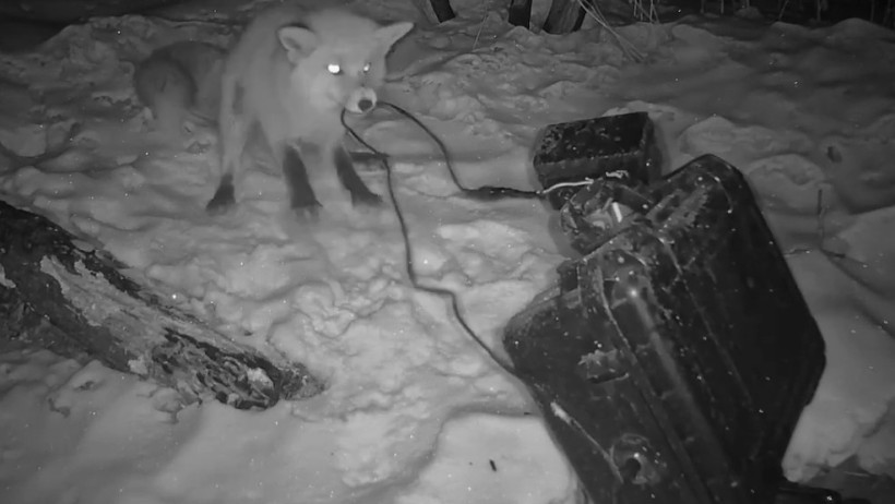 Фотоловушка была установлена недалеко от его добычи, спрятанной под снегом. Лис явно не обрадовался такому соседству и решил действовать. На кадрах видно, как он сначала с подозрением принюхивается, а затем приступает к ликвидации незваного наблюдателя. Лис яростно пытается сломать фотоловушку, и, судя по всему, ему это удается — кабель вырван.