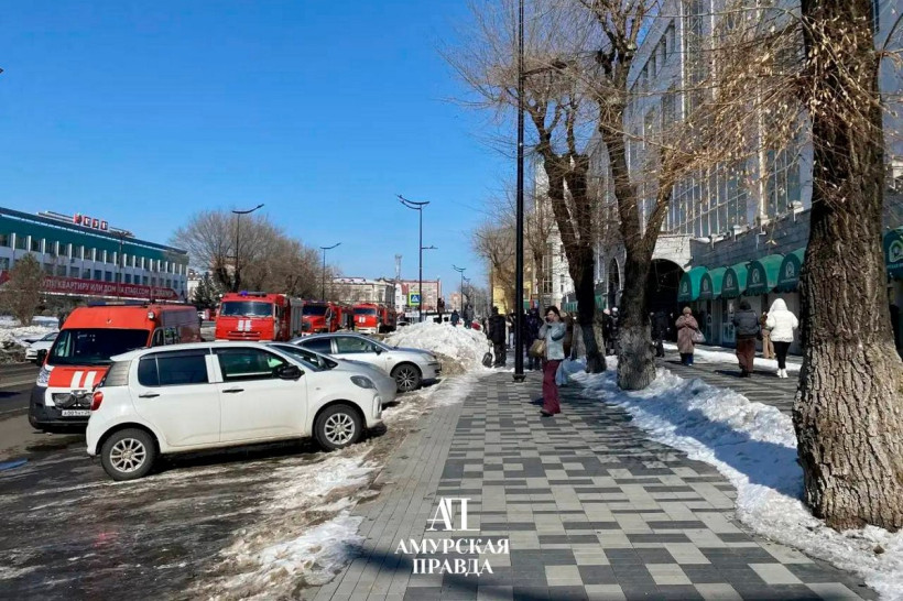 Чрезвычайное происшествие случилось 17 марта в торговом центре «Амурская ярмарка» в Благовещенске. Во второй половине дня на первом этаже здания начался пожар. По словам очевидцев, к ТЦ прибыли минимум пять пожарных машин, а всех посетителей экстренно вывели на улицу.