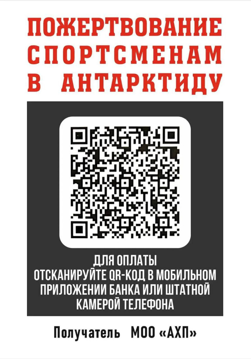 Неравнодушные могут перевести деньги на счет Межрегиональной общественной организации «Ассоциация холодового плавания» (МОО «АХП») по QR-коду.