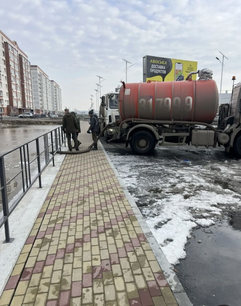 Вода пошла на дорогу: как в Чигирях устраняют весенний потоп