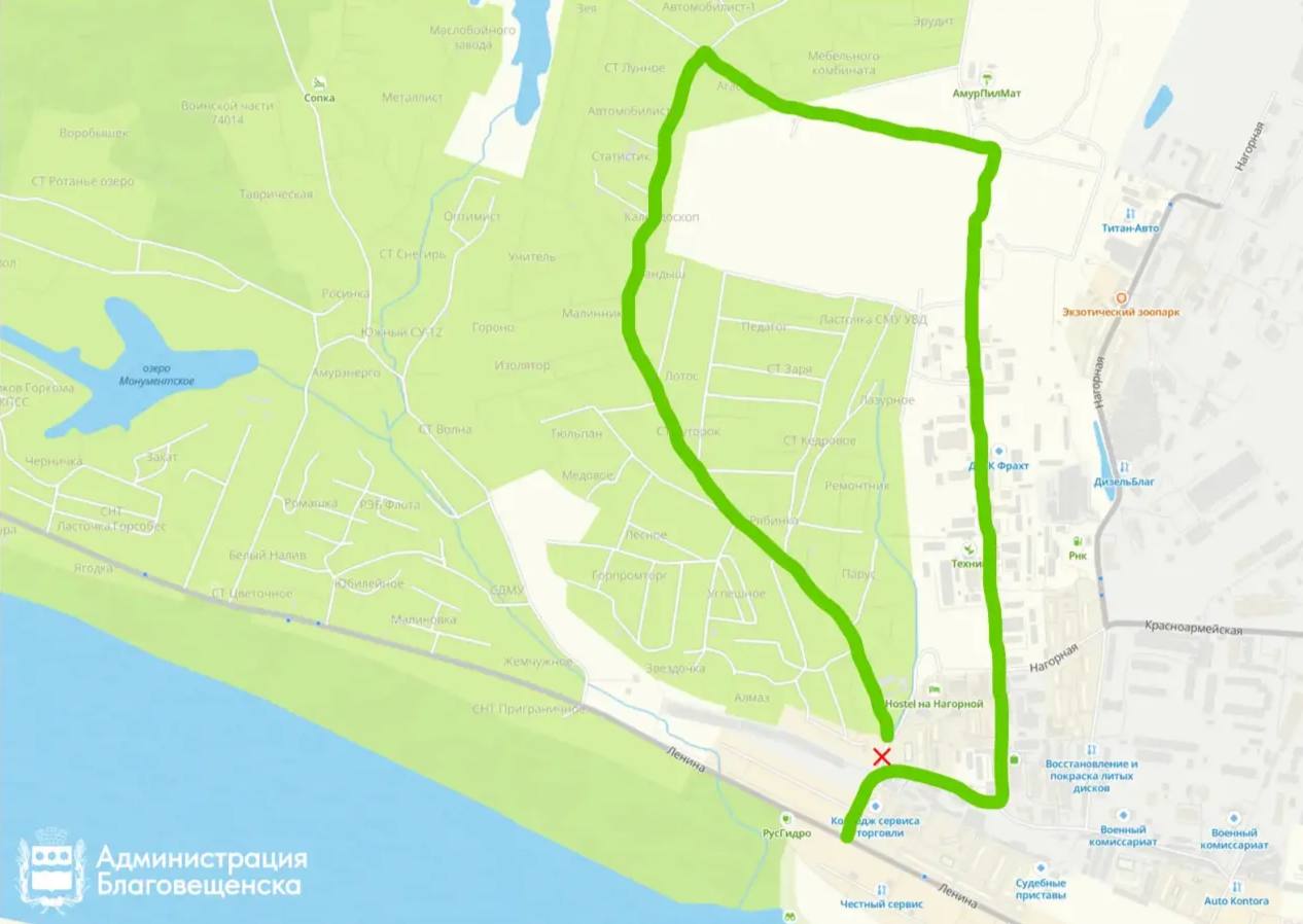 Перекрытый участок расположен чуть выше крутого поворота Нагорной. При этом проезд к домам и садовым участкам возможен через улицу Нагорную мимо золоотвала, сообщили в администрации Благовещенска.