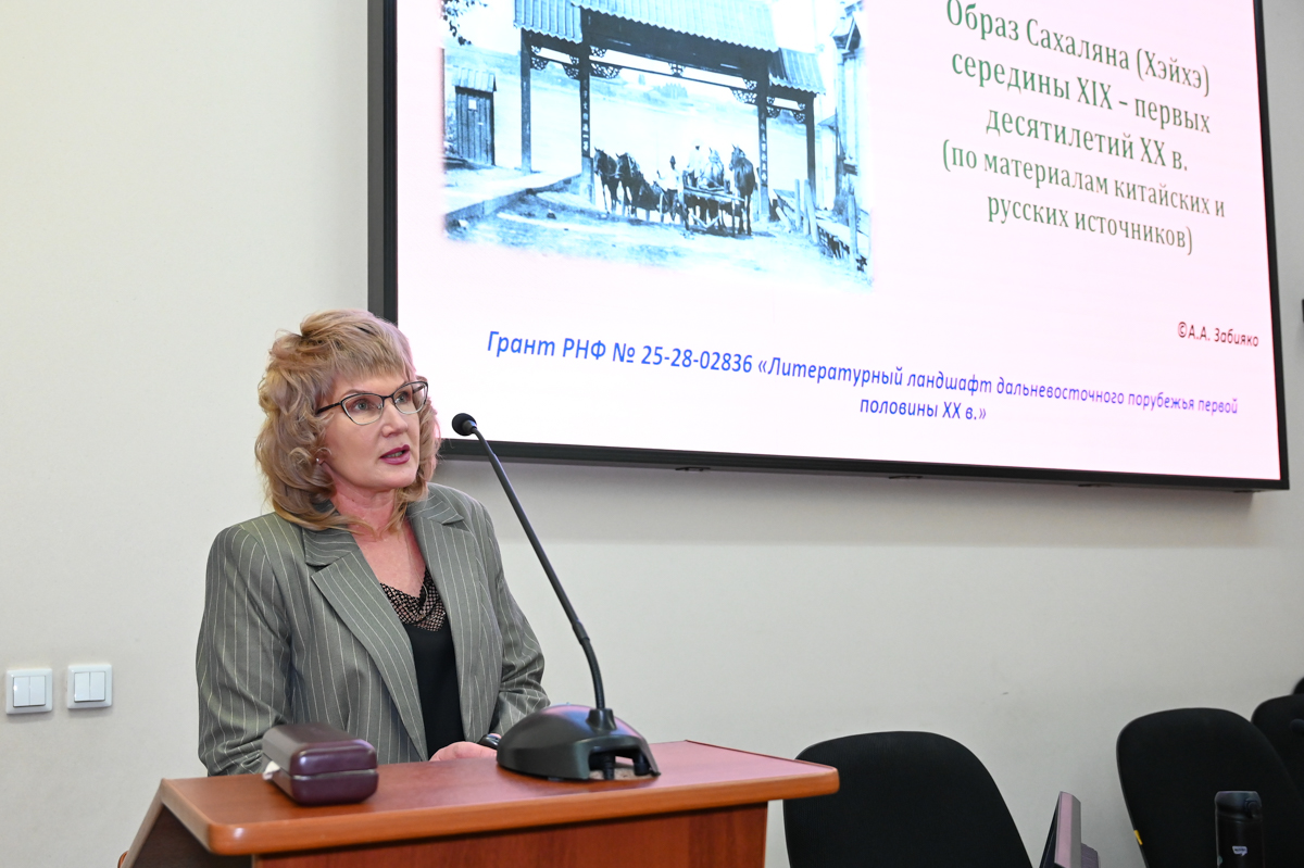 Анна Забияко — доктор филологических наук, профессор, заведующая кафедрой россиеведения и русской филологии факультета международных отношений АмГУ, главный научный сотрудник Центра изучения дальневосточной миграции. Она долго изучала тему истории Хэйхэ, обращаясь к толковым и этимологическим китайским словарям, маньчжурским историческим хроникам, статистическим сводам, этнографическим и географическим трудам российских ученых XIX века, материалам русской и китайской периодики, литературным текстам начала ХХ века. Всё это вылилось в научную работу, материалом которой Анна Анатольевна поделилась со всеми желающими в областном музее на лекции «Образ Сахаляна (Хэйхэ) середины XIX – первых десятилетий XX века».