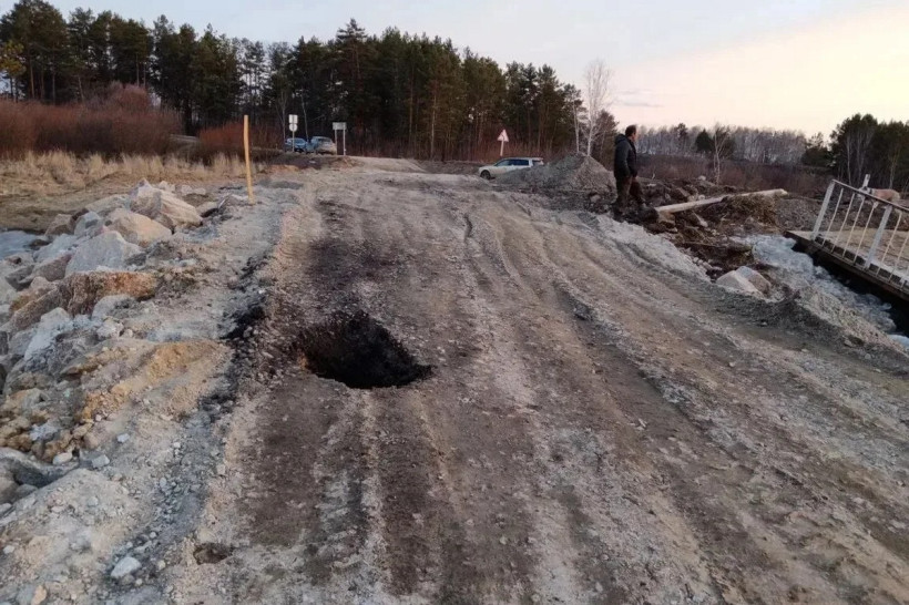 В Шимановском округе река Большая Пёра размыла участок дороги. Провал полотна произошел 11 апреля на подъезде к селу Светильное.