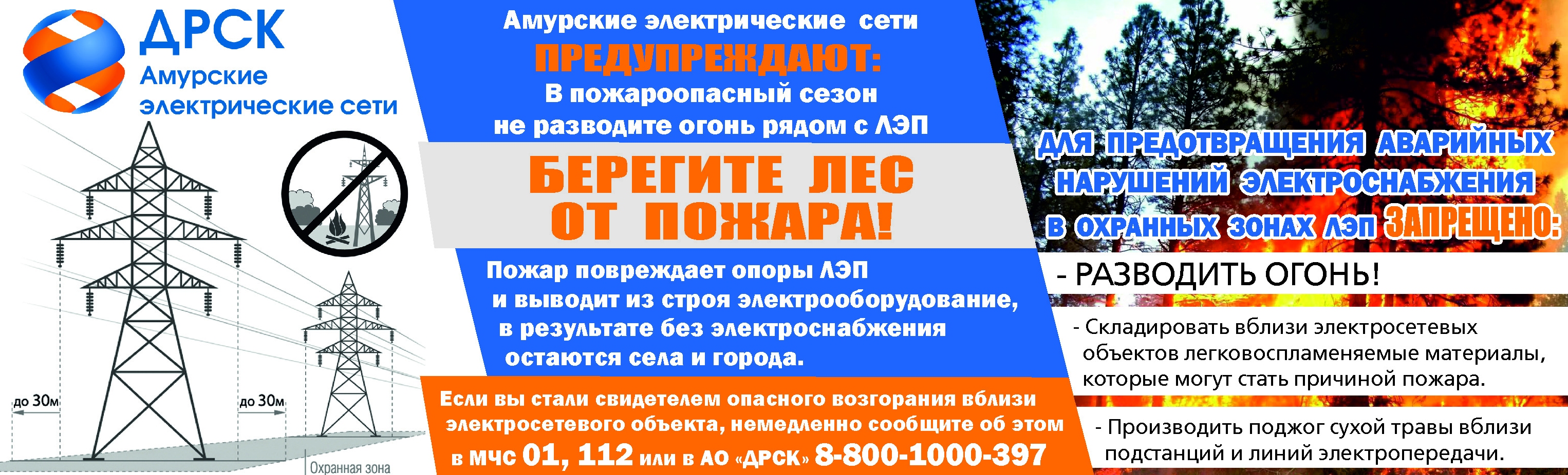 Обо всех возгораниях рядом с энергообъектами и их повреждениях просьба сообщать по телефону горячей линии АО «ДРСК»: 8-800-1000-397 (круглосуточно и бесплатно), либо в диспетчерские пункты районов электрических сетей по месту жительства.