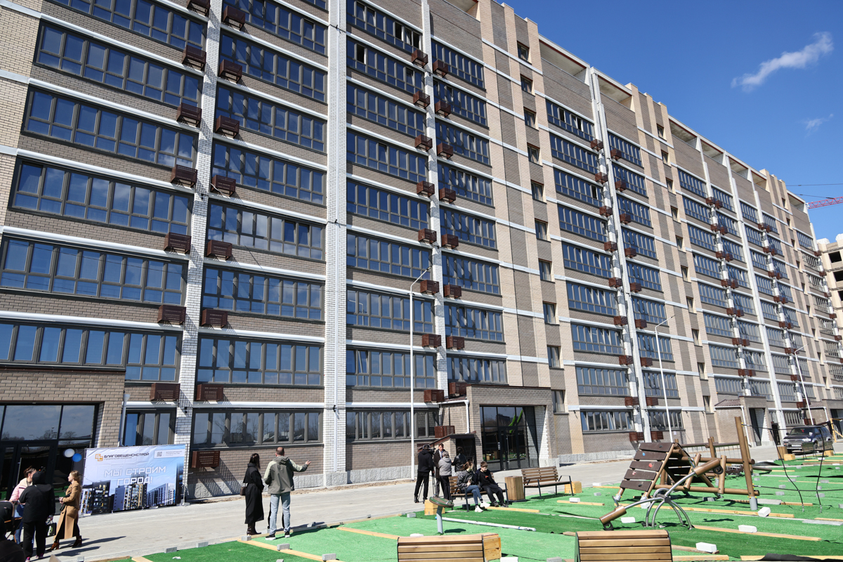 Чигиринцы-новоселы собрались во дворе нового жилого комплекса в Европейском, который построил «Благовещенскстрой». Большой дом на 600 квартир, современная детская площадка, безопасная дворовая территория без автомобильного проезда.