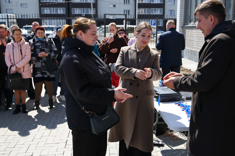 — Если честно, до сих пор не могу поверить, хотя нам сейчас ключи вручать будут, — признается молодая мама с коляской Наталья Шубчик. — Наконец-то дождались!