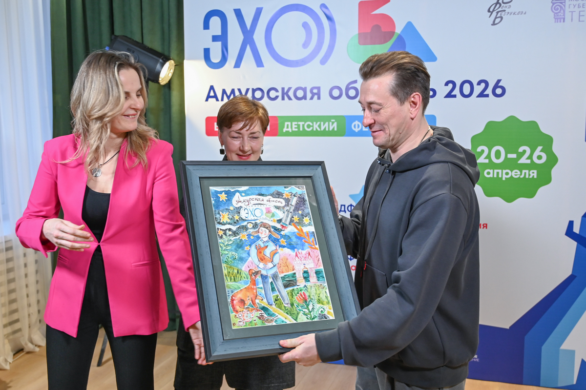 — Хочу поблагодарить наших соорганизаторов из министерства культуры Амурской области и областной филармонии: это очень заряженные и очень заинтересованные люди. Если бы не они, мы бы до вас не доехали. Это наше 20-е по счету «ЭХО БДФ» в регионах России, и программа обширная: театр, кино, анимация, книги, образовательные направления.